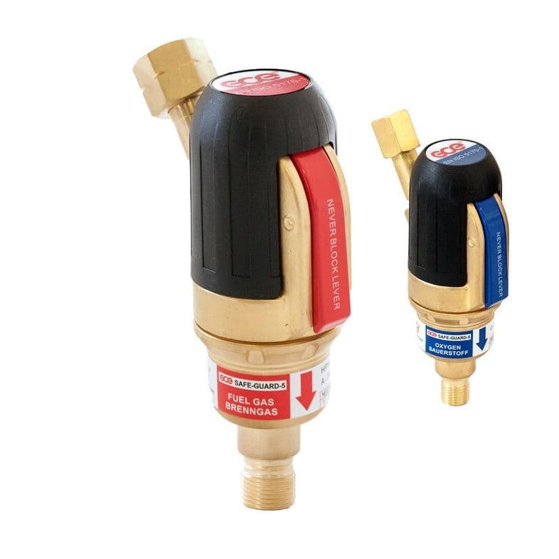 GCE Home / Shop By Brand / GCE / GCE Safeguard 5 - 5 Function Resettable Flash Back Arrestor GCE Safeguard 5 - 5 Function Resettable Flash Back Arrestor GCE Safeguard 5 - 5 Function Resettable Flash Back Arrestor £74.30 £89.16 (inc. VAT) Stock Status: In Stock Choose Gas Type: Oxygen Fuel Add to your Wish List Information Specifications Reviews Resettable Flashback Arrestor Maximum Number of safety features defined by EN730-1 High Visability trip/rest lever coupled with quick acting reset even when pressurised. Angled Inlet to minimise hose damage 100% production flame tested for flashback resistance Inspection dates can be marked on product for easy reference Fully conforms to EN ISO 730-1 Functions Flame Arresting Element Non Return Valve NV Pressure Sensitive cut off valve PV Temperature Sensitive cut off valve TV Reset Mechanism to clearly advise unit activation RM Description GCE Safeguard 5 Resettable Flash Back Arrestor Model Safeguard 5 Part Number 0764457 Oxygen 0764456 Fuel Gas Oxygen or Fuel Connections 3/8 BSP Female Inlet 3/8 BSP Male Outlet Brand: Victor Product Code: 0764457 Customer reviews No reviews left yet Write A Review Sort byMost RecentTop Rated No reviews have been left for this product, be the first to leave a review