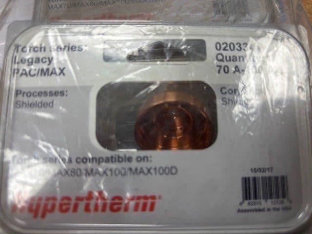 020334 is a 100-amp machine shield for MAX 70, MAX 80, MAX 100, and MAX 100D plasma cutting systems. The 020334 shield is designed for use with specific Hypertherm systems and torches, including: